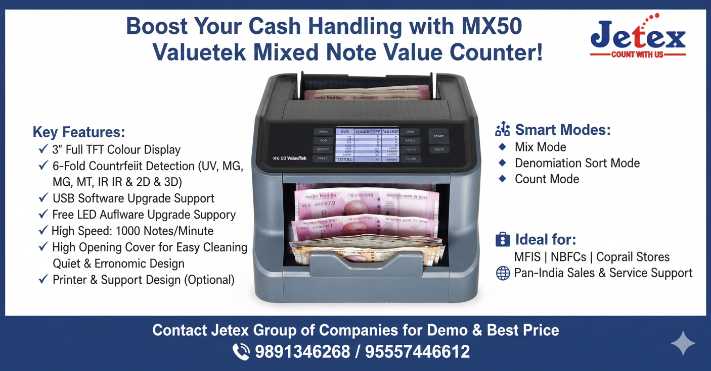 Upgrade your cash management with a powerful, fast, and reliable MX50 Valuetek Value Counter, designed for banks, NBFCs, retailers, and corporates.