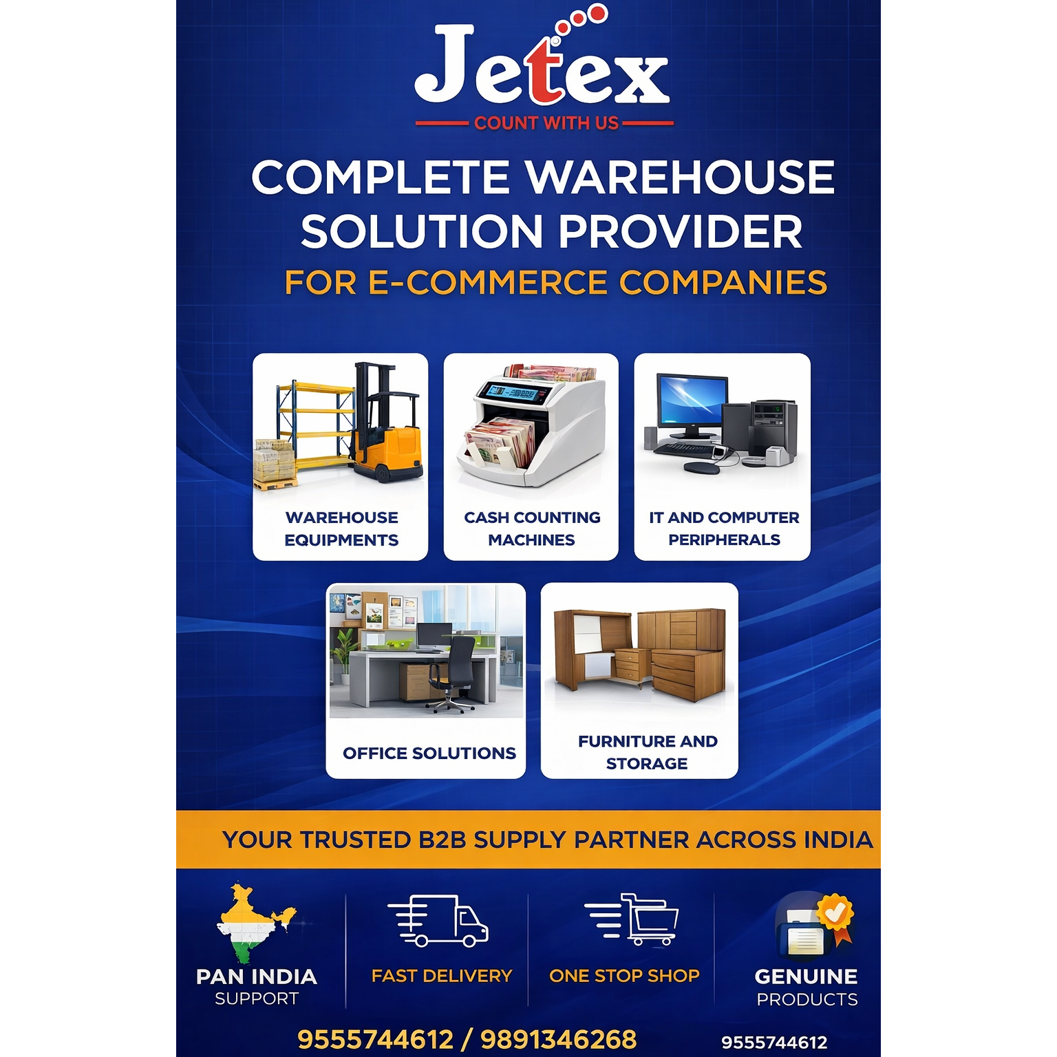 Streamline your operations with Jetex Group of Companies β your trusted partner for all warehouse and office procurement needs.