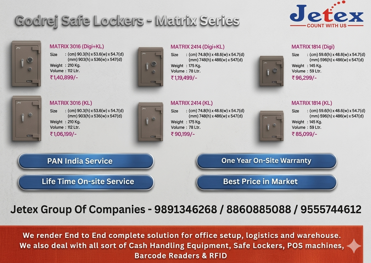 Whether you need a Godrej safe locker for home, office, jewellery shop, retail store, bank, or commercial use, Jetex provides secure, durable, and trusted locker solutions with professional support.